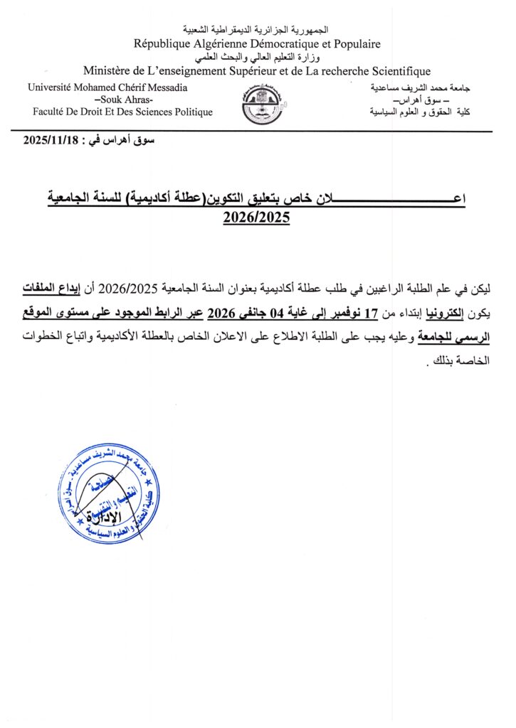 فتح طلبات العطلة الأكاديمية للسنة الجامعية 2025 /2026