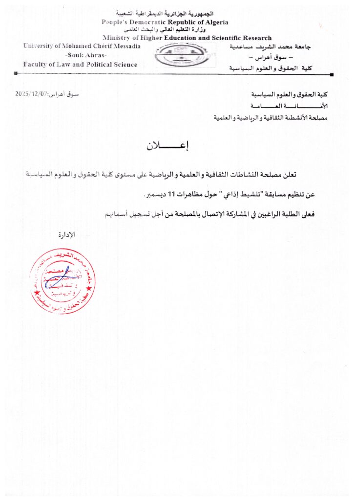 اعلان عن تنظيم مسابقة تنشيط اذاعي