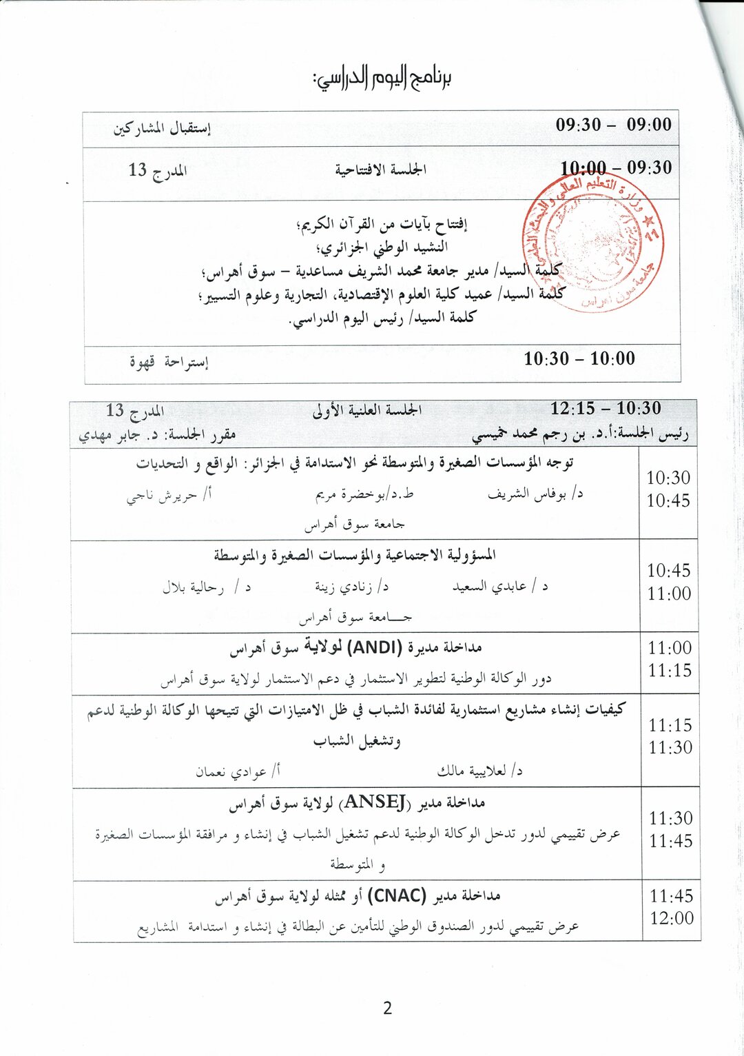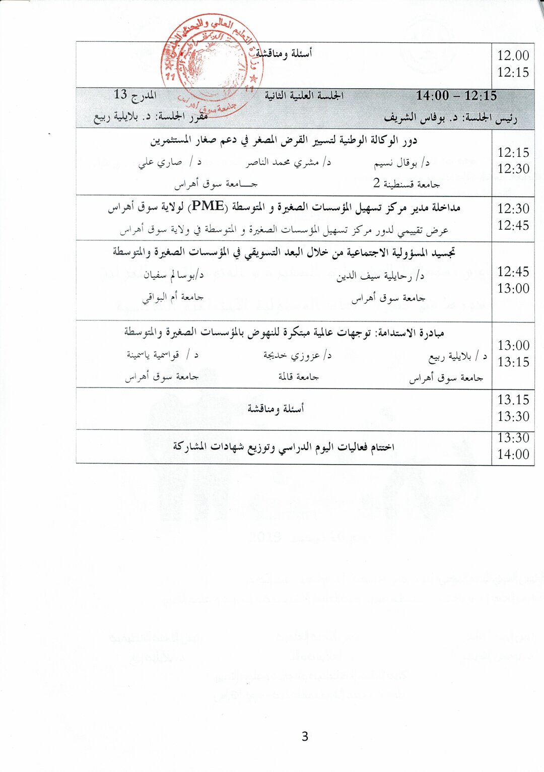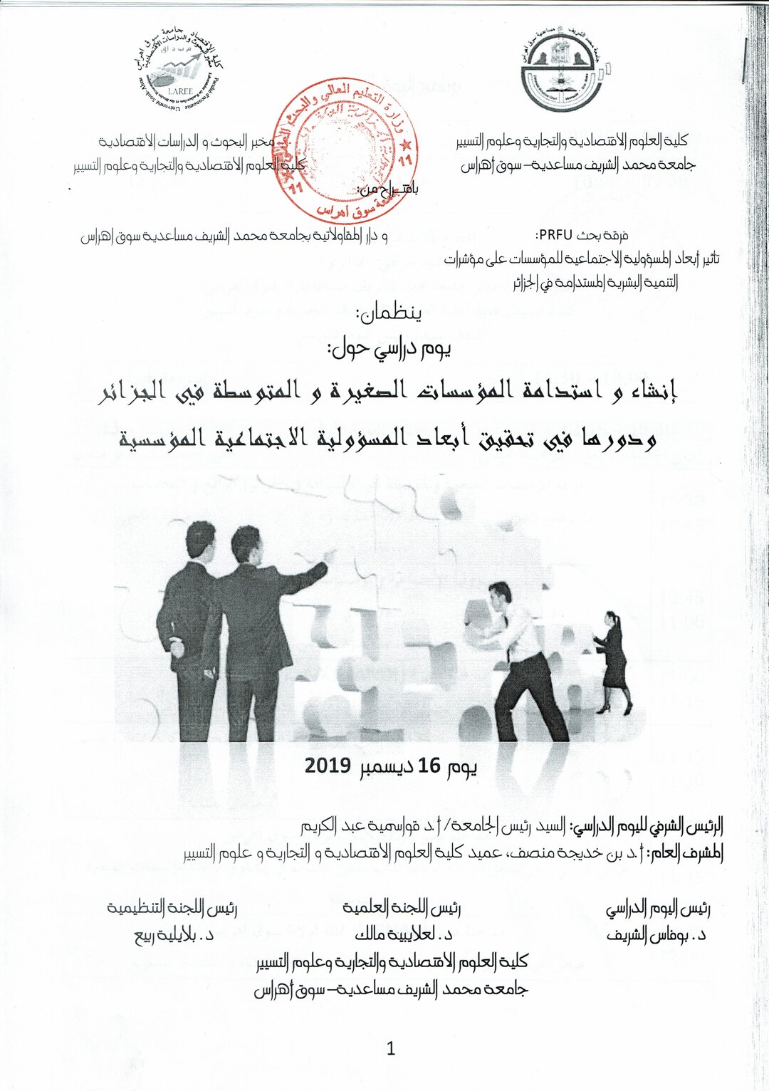 يوم دراسي 16ديسمبر 2019 : انشاء و استدامة المؤسسات الصغيرة و المتوسطة في الجزائر و دورها في تحقيق ابعاد المسؤولية الاجتماعية المؤسسية