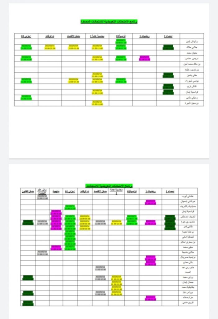 برنامج الامتحانات التعويضية السنة اولى قسم التعليم الاساسي