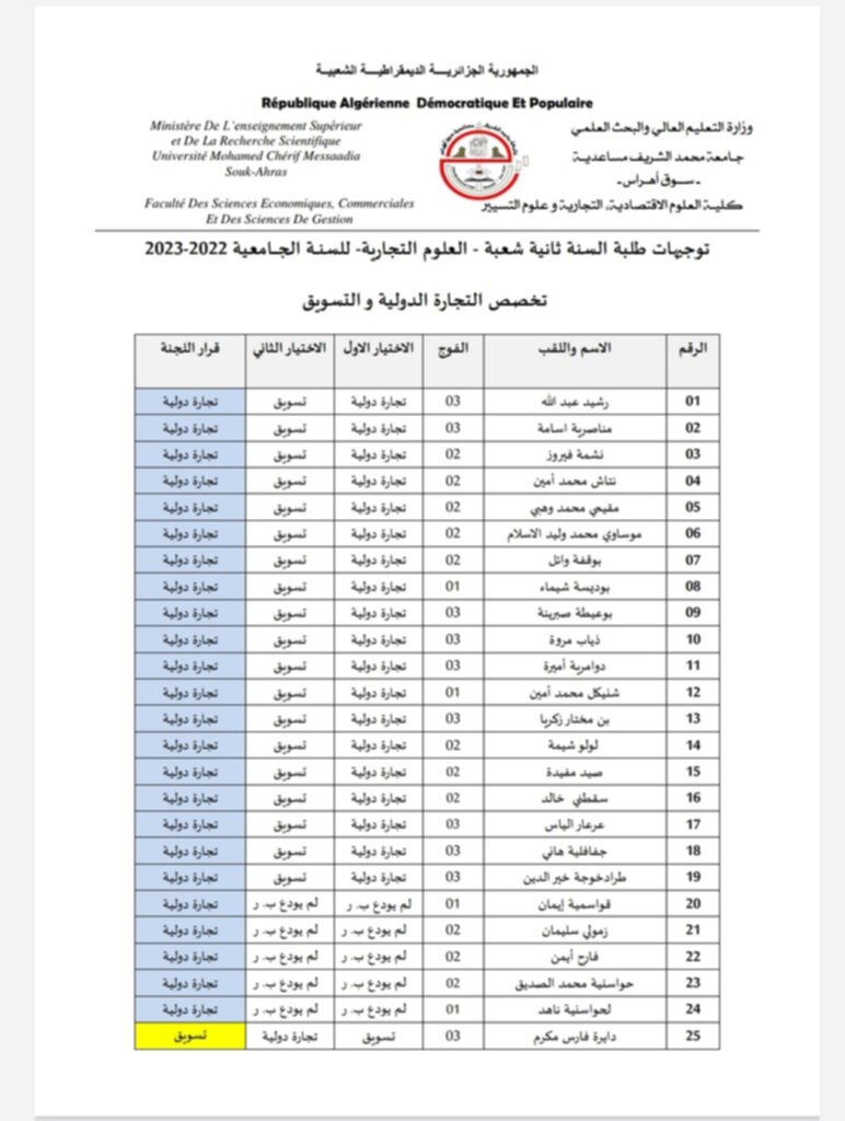 توجيهات طلبة السنة الثانية شعبة العلوم التجارية