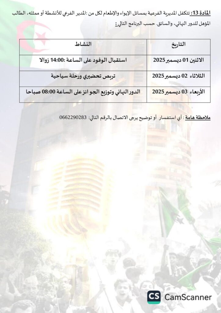 #عن_بعد من تاريخ25أكتوبر إلى غاية 09 نوفمبر 2025 #وحضوريا من13إلى 18نوفمبر 2025.