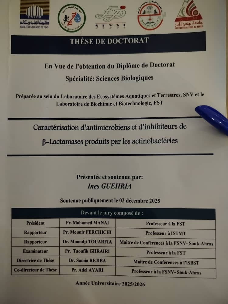 في إطار تعزيز التعاون العلمي و التأطير المشترك لاطروحة الدكتوراه بين جامعة سوق أهراس و جامعة تونس المنار، و بتاريخ 3 ديسمبر 2025 شارك الأستاذان: