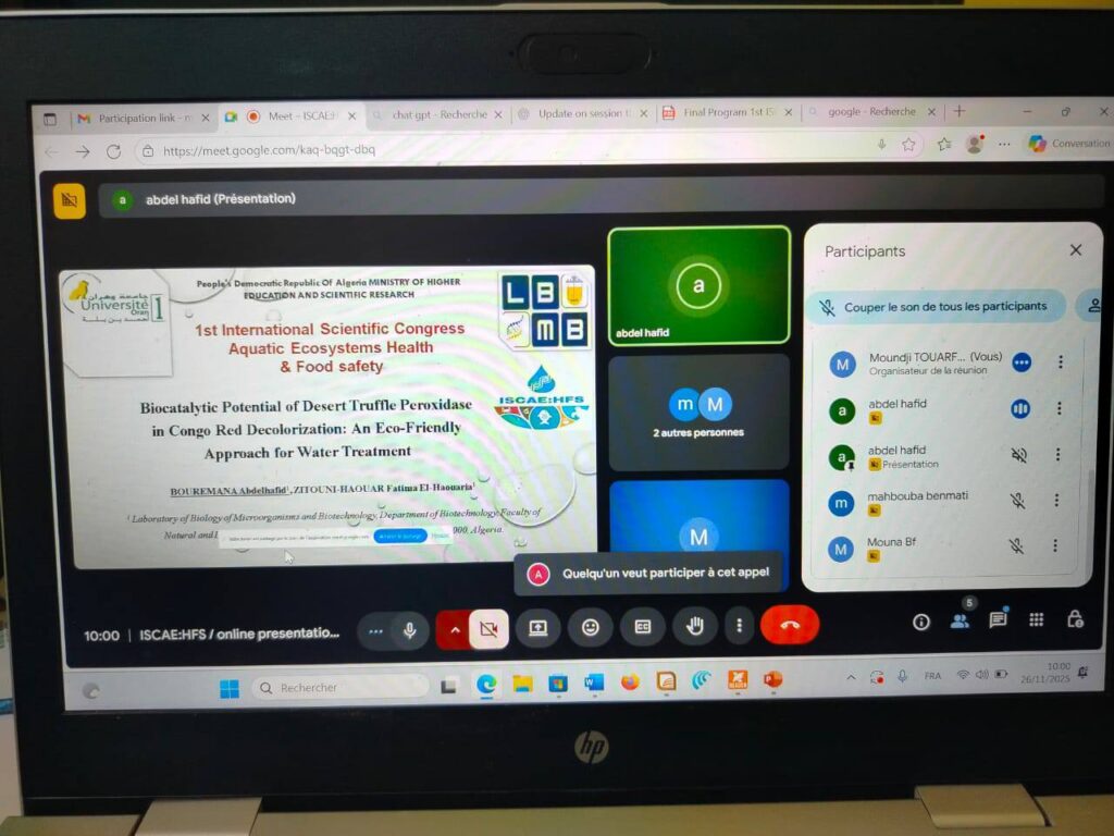اليوم الثاني للملتقى الدولي الجمعة 12 ديسمبر 2025 22:25 الجمعة 12 ديسمبر 2025 22:25 مقتطفات من اليوم الثاني للملتقى الدولي المنظم بكلية علوم الطبيعة و الحياة. المشاركات تمت عبر تقنية التحاضر المرئي.