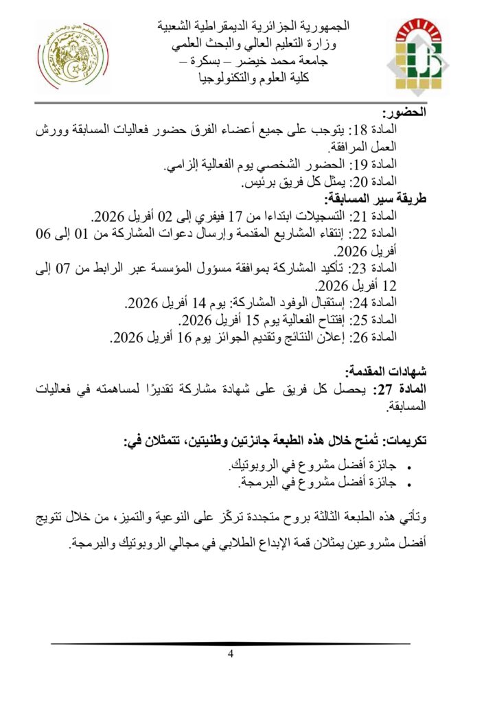 تنظيم الطبعة الثالثة للمسابقة الوطنية الجامعية للبرمجة الأحد 1 مارس 2026 08:58 الأحد 1 مارس 2026 08:58