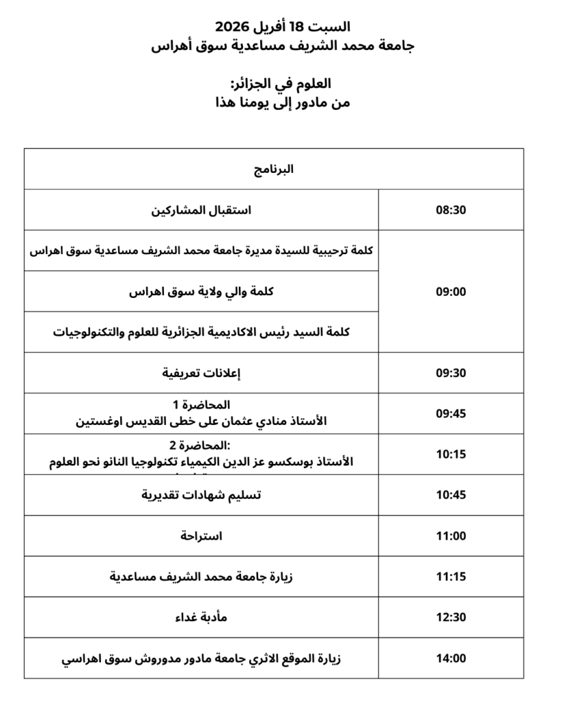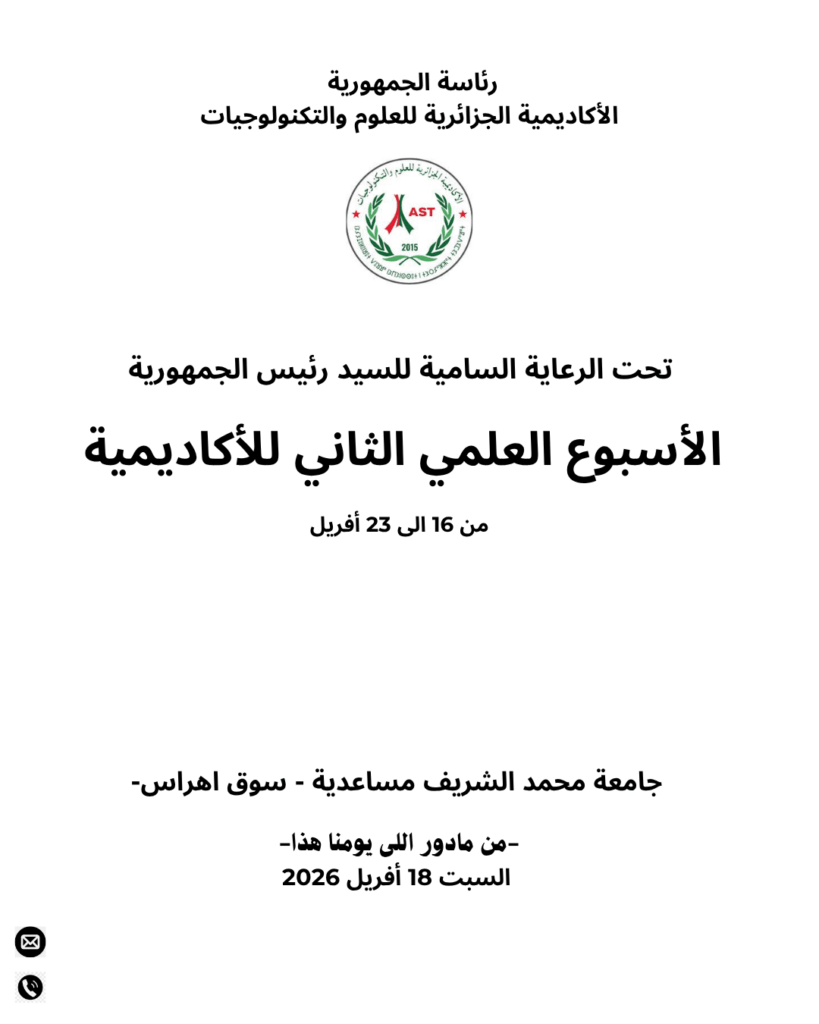 عن تنظيم ملتقى وطني لمخبر الخدمة الاجتماعية والتنمية في الجزائر ينظم الملتقى العلمي الوطني عن بعدالشباب الجامعي وآليات الإدماج المهني في الجزائر الواقع والتحديات يوم 15 جوان 2026