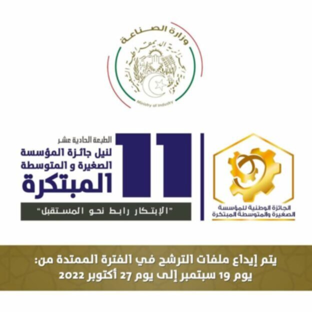 اعلنت وزارة الصناعة عن إطلاق الطبعة الحادي عشرة (11) لمسابقة الجائزة الوطنية للمؤسسة الصغيرة والمتوسطة المبتكرة