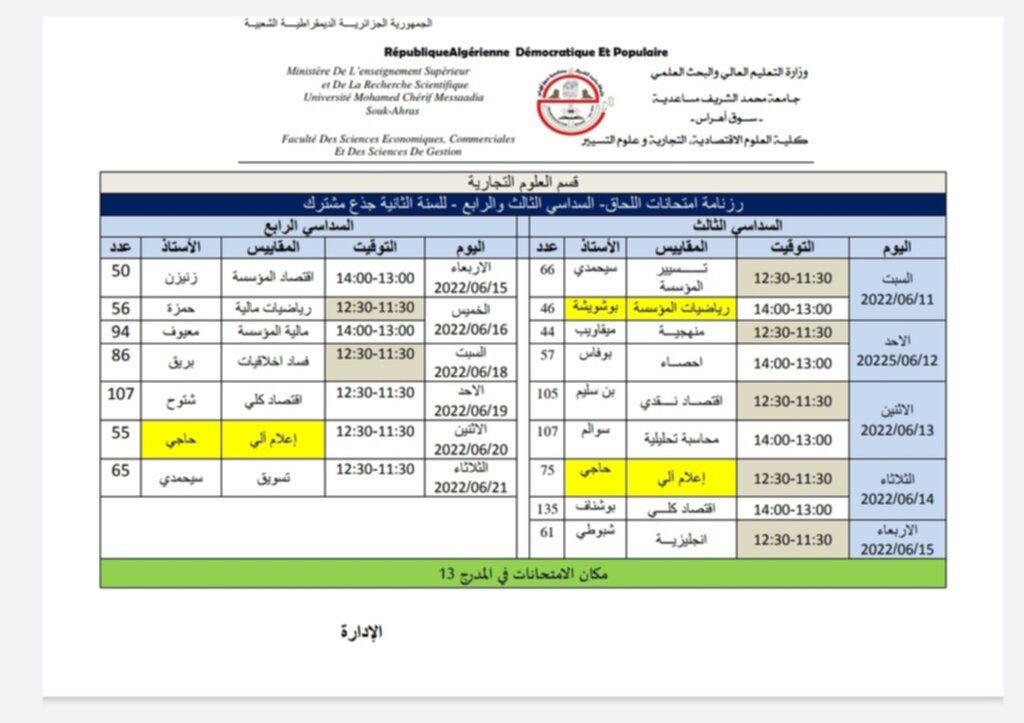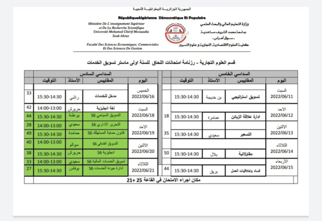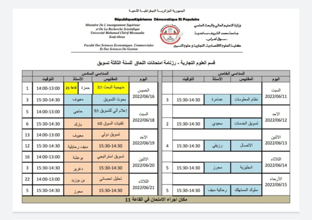 رزنامة اللحاق المصححة قسم علوم التجارية