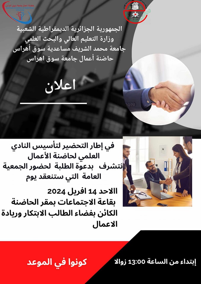جمعية عامة لتأسيس النادي العلمي لحاضنة الأعمال