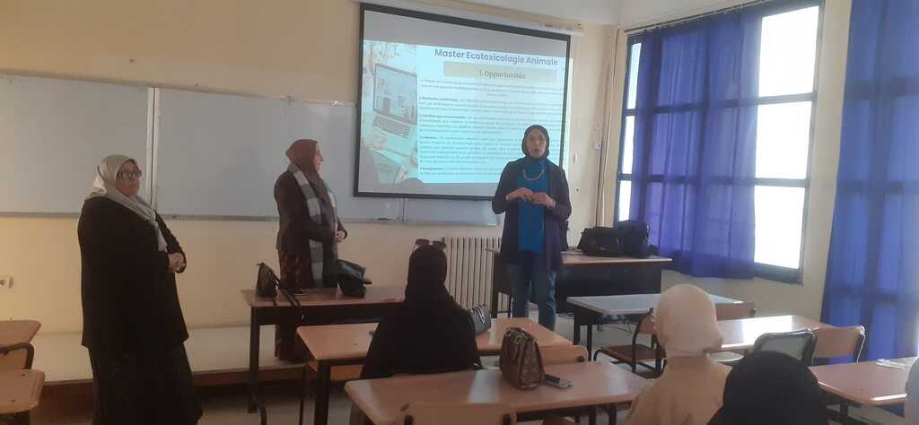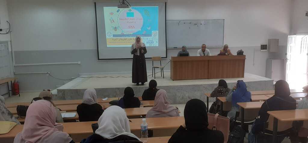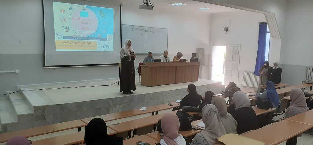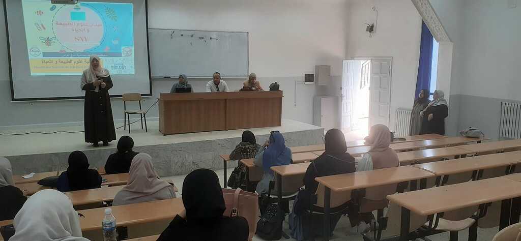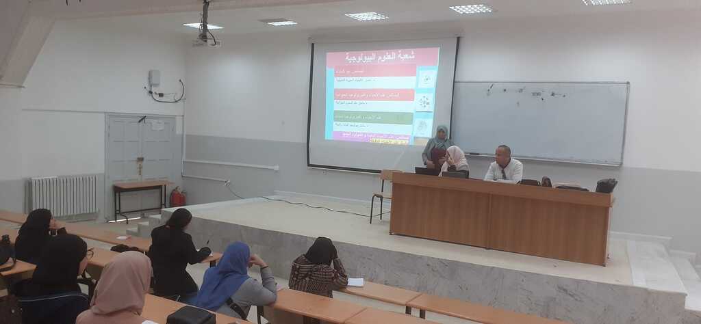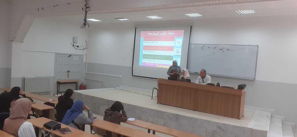 تحت إشراف الأساتذة: مسؤولة الميدان، مسؤولي الشعب و التخصصات، تم يوم الإثنين 15 أفريل 2024 إجراء الأبواب المفتوحة على كلية علوم الطبيعة و الحياة لعرض مختلف الشعب و التخصصات الموجودة و التعريف بها.