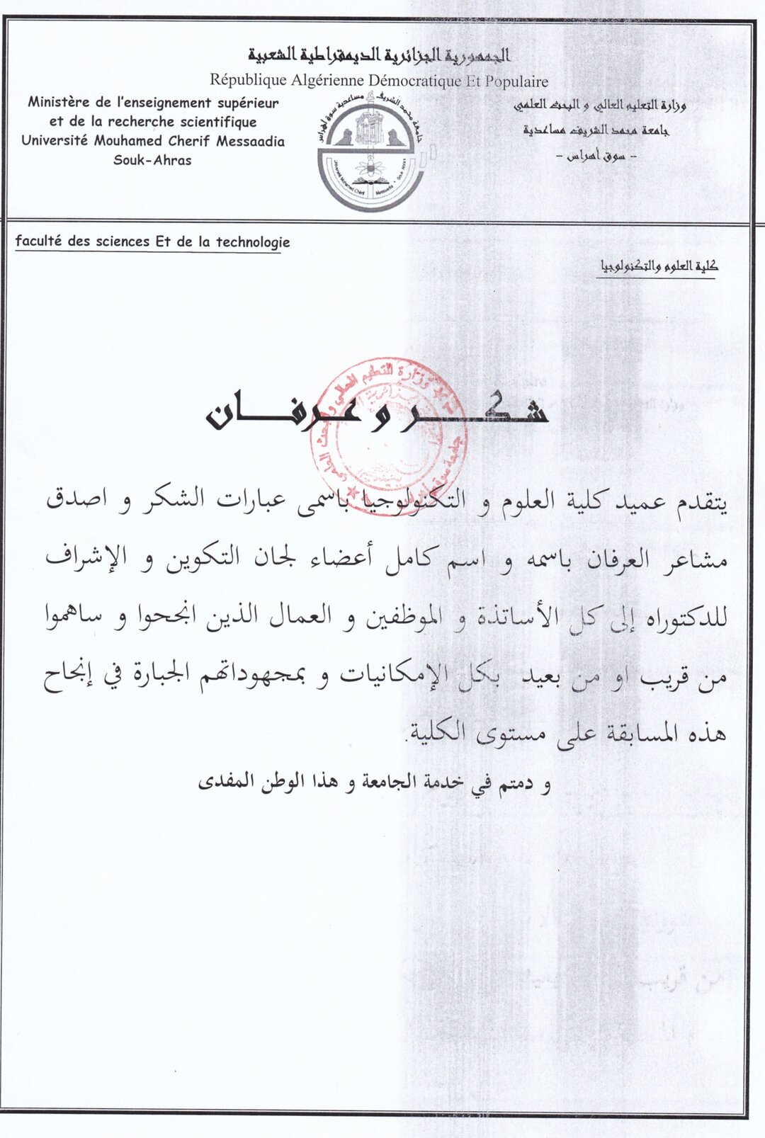 شكــــر و عرفــــان