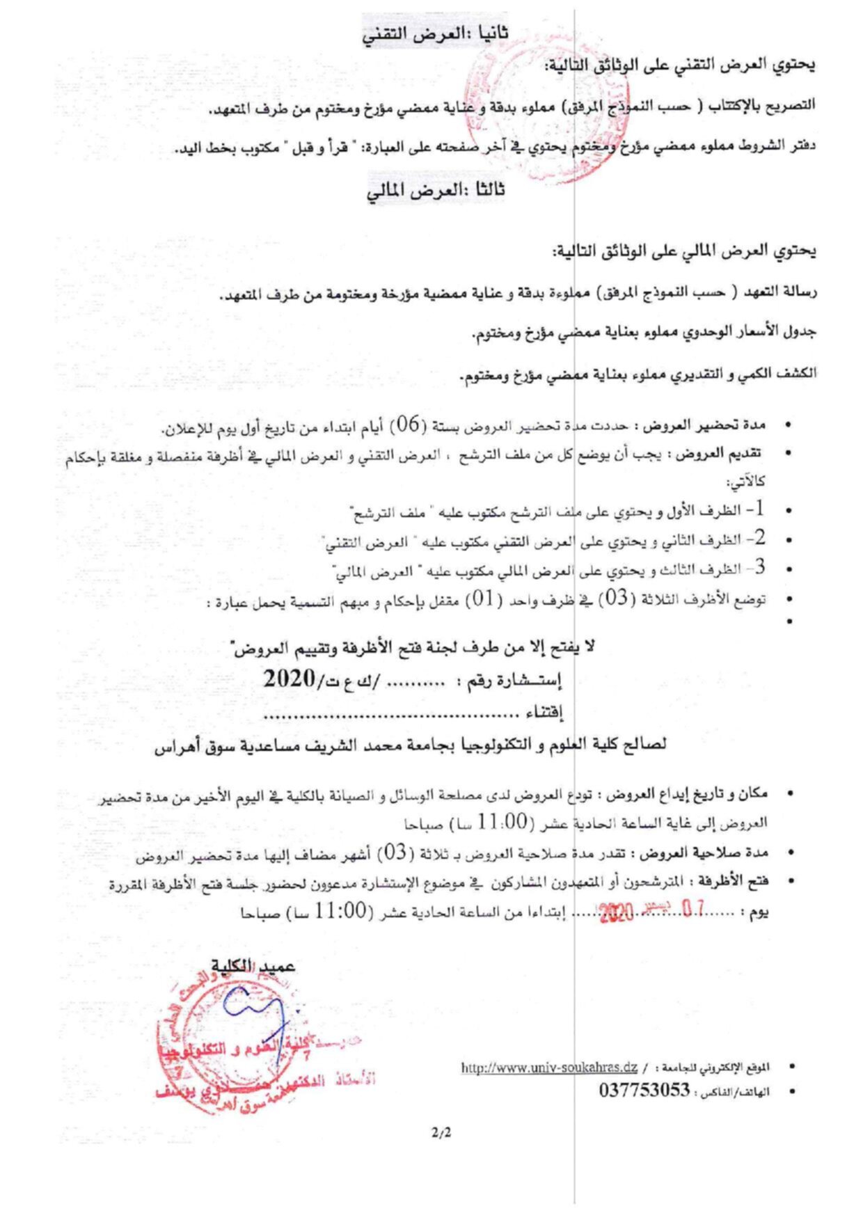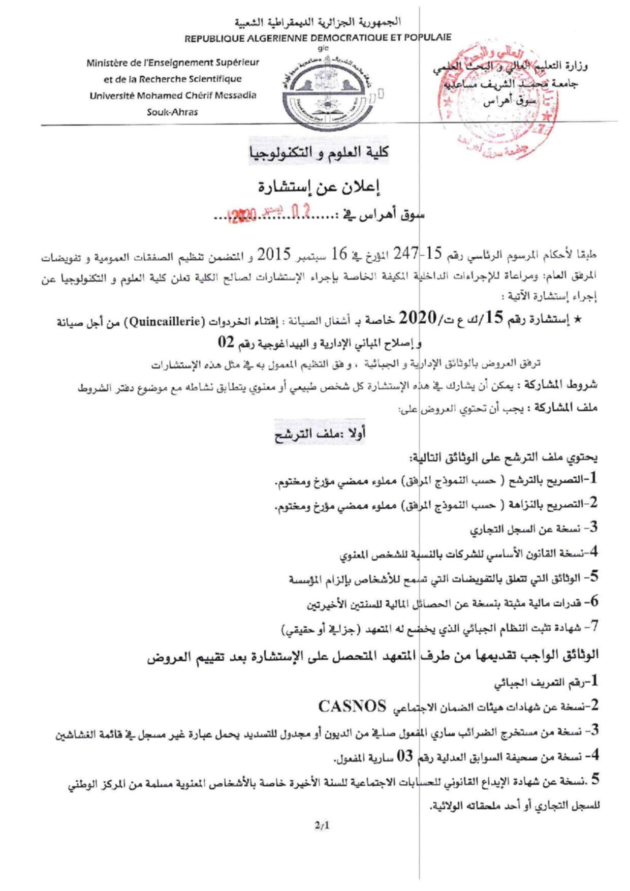 كلية العلوم و التكنولوجيا : اعلان عن استشارة