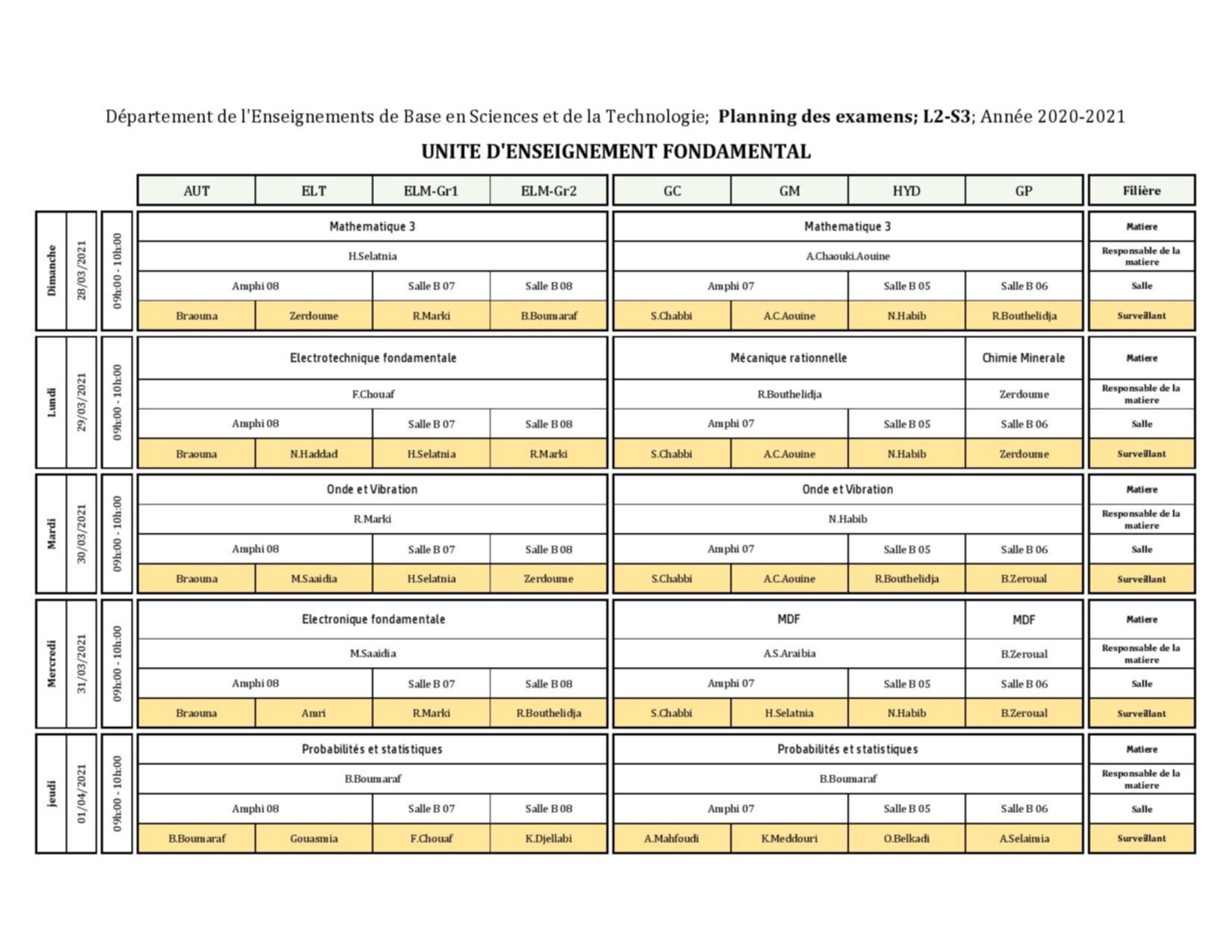 يرزنامة امتحانات السنة 2ليسانس لقسم التعليم الاساسي ب