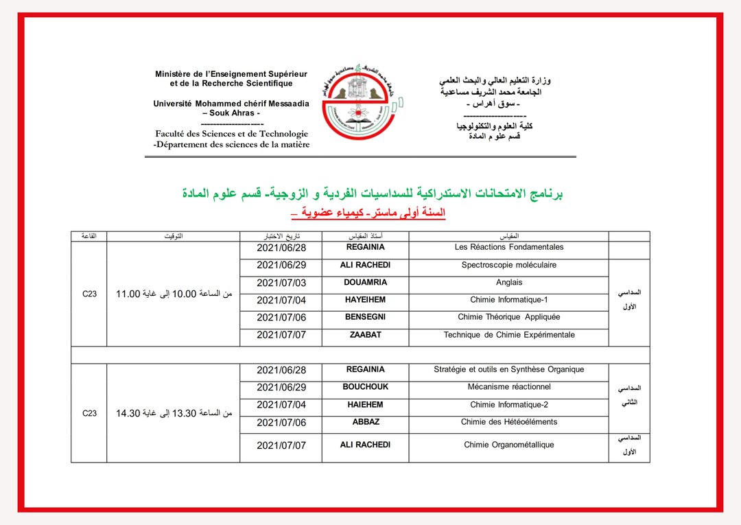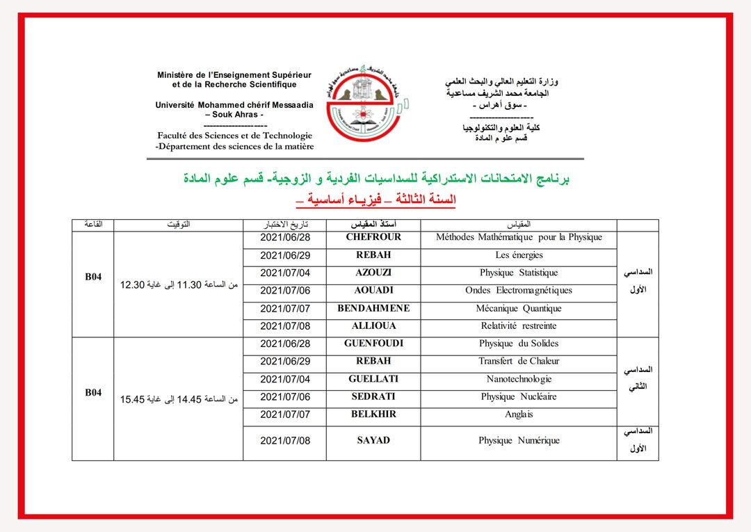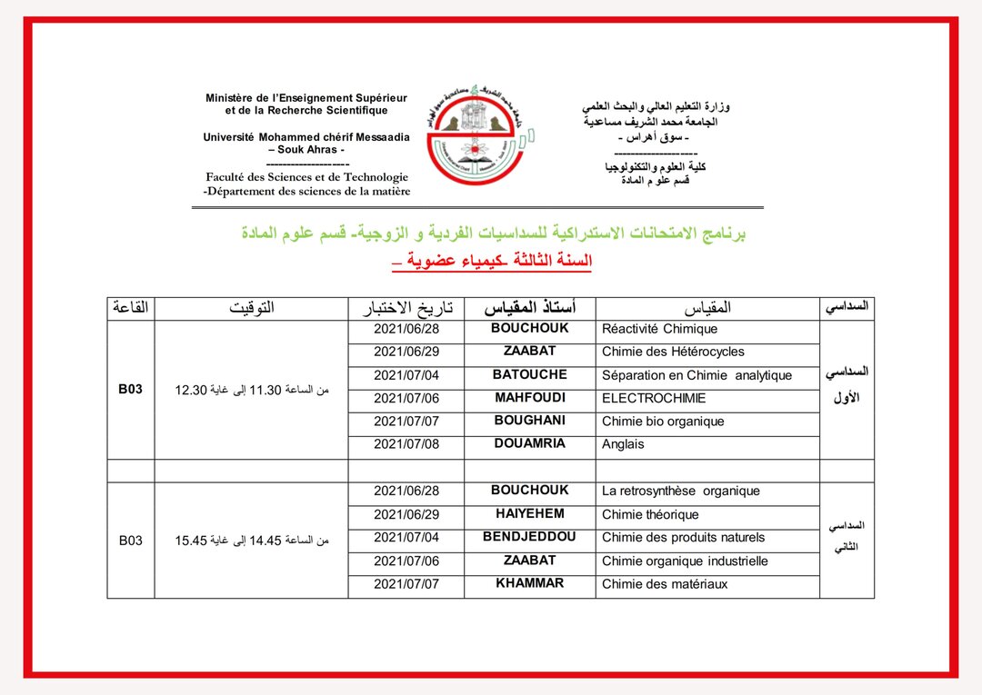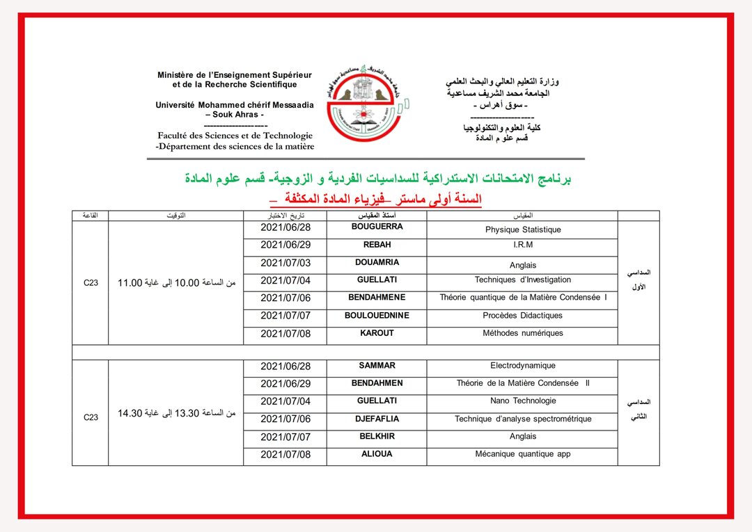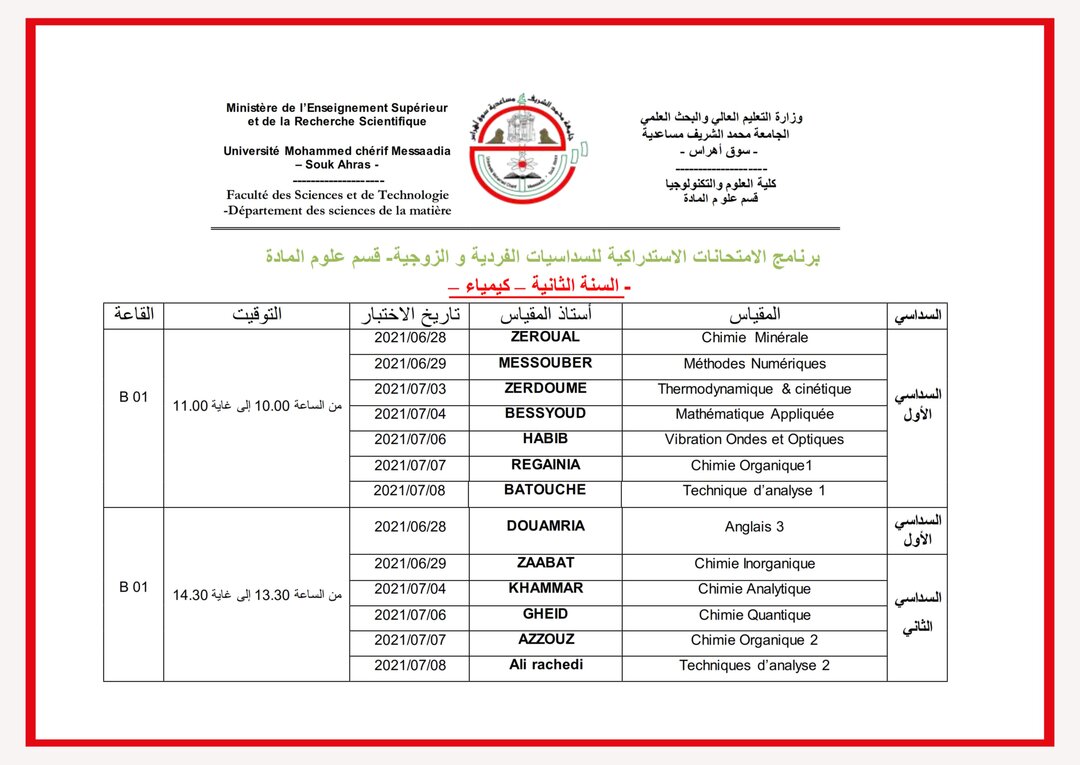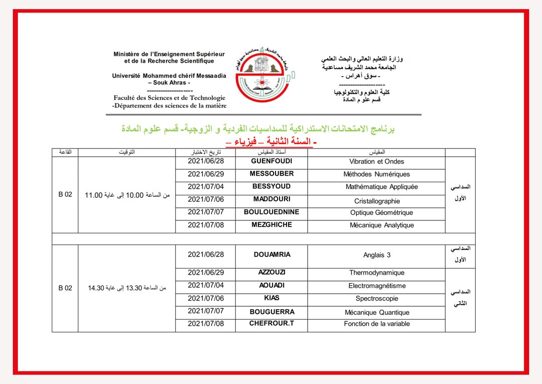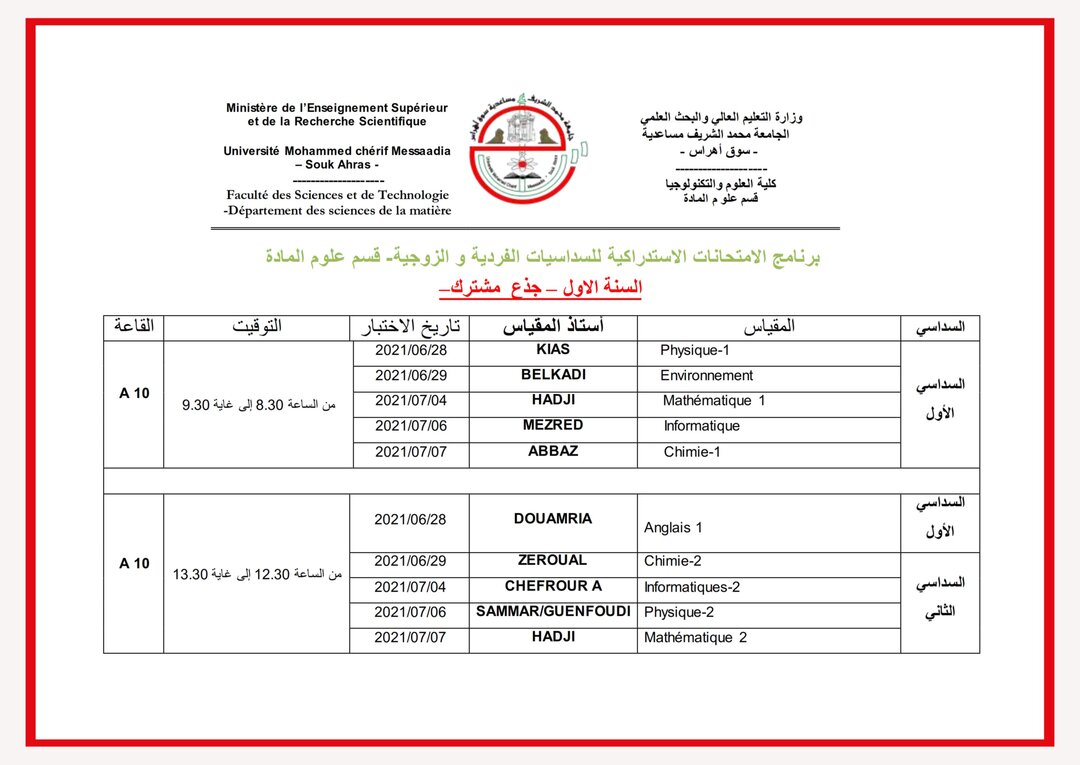 رزنامة الامتحانات الإستدراكية لقسم علوم المادة- نسخة محينة