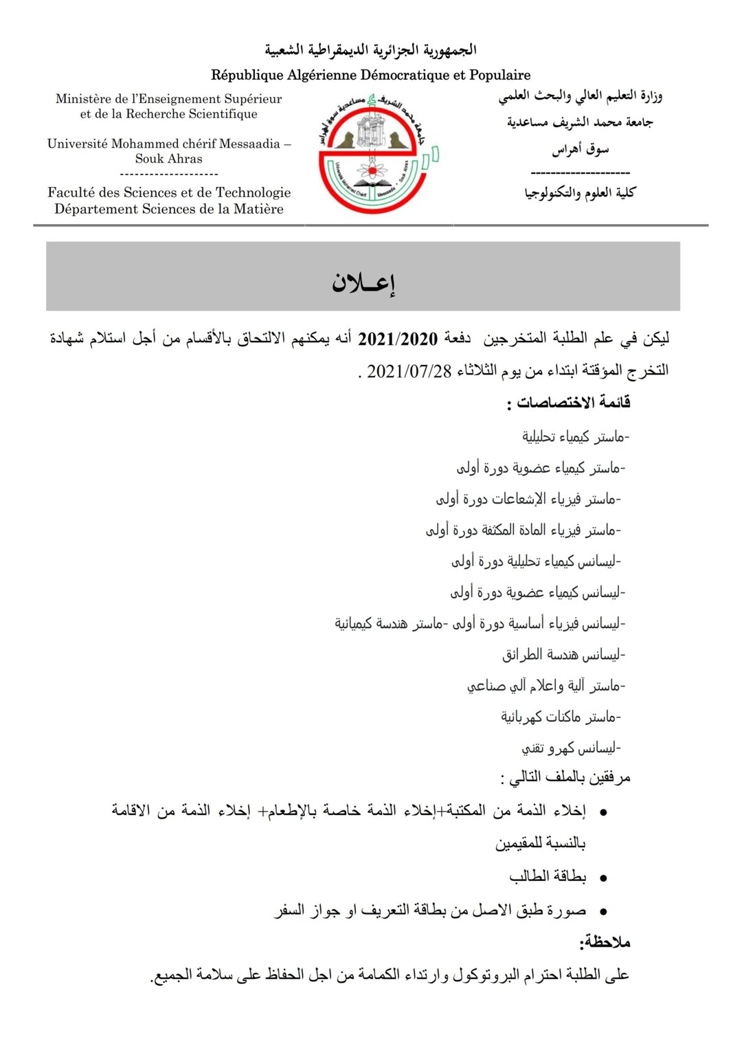 اعلان للطلبة المتخرجين دفعة 2020+2021