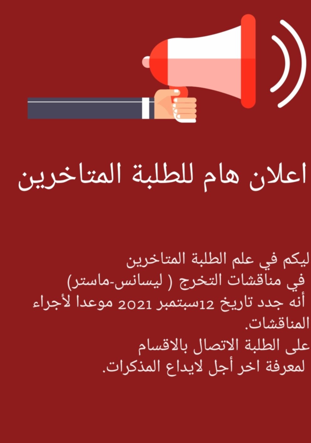 اعلان للطلبة المتاخرين في مناقشات التخرج