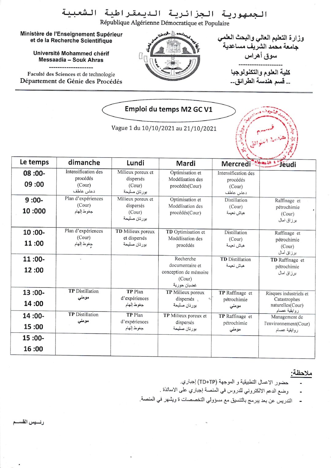 التوزيع الزمني الماستر 2 قسم هندسة الطرائق