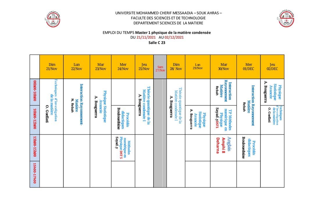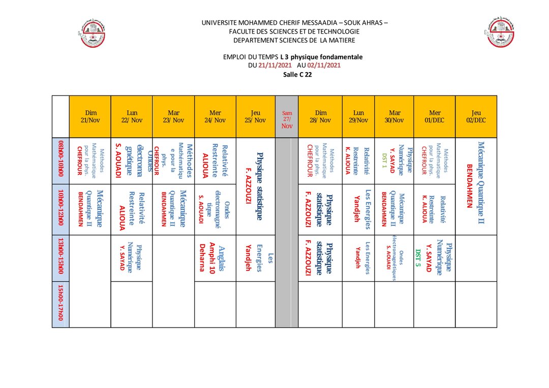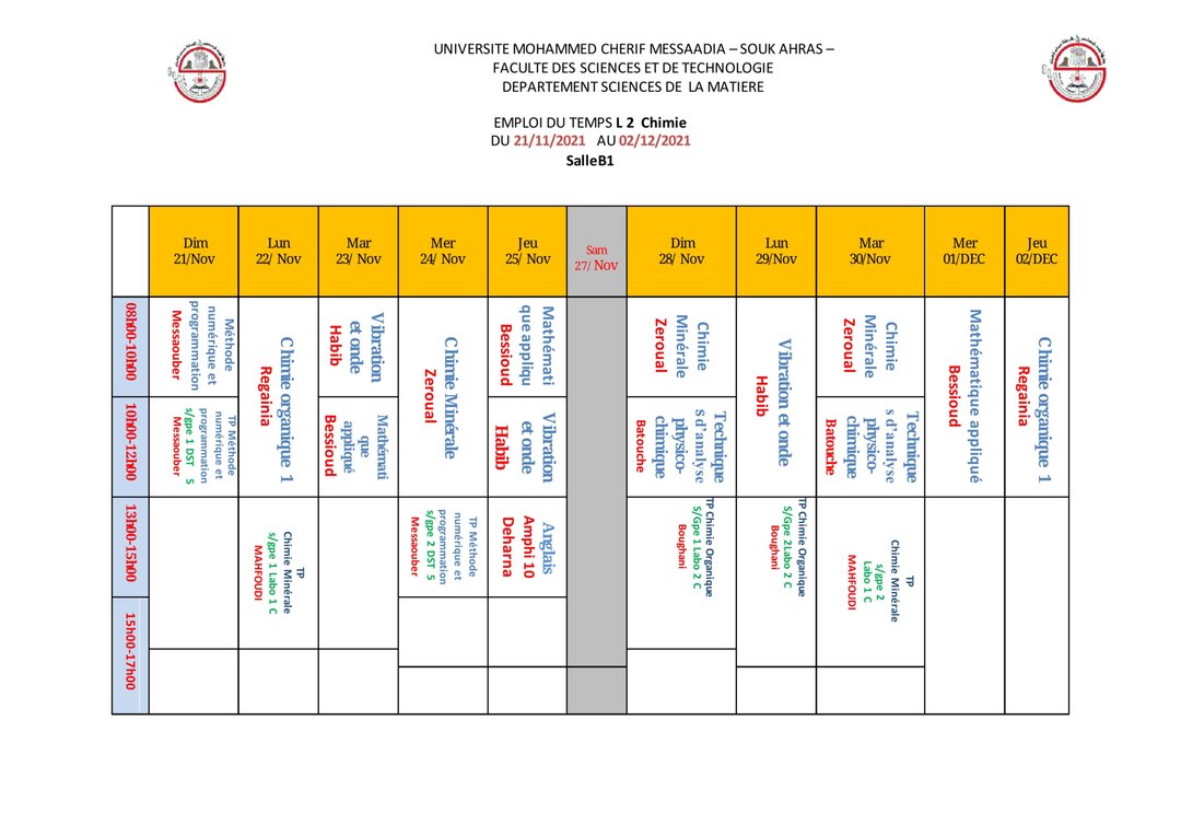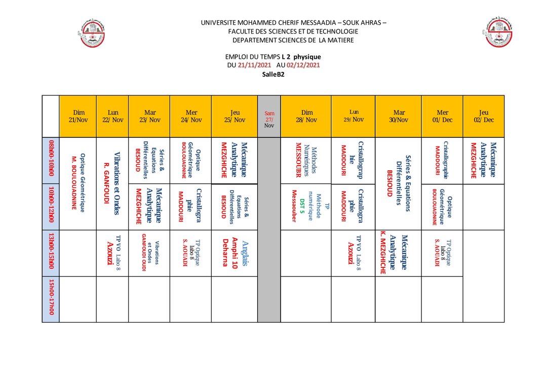 التوزيع الزمني للدفعة 2 لقسم علوم المادة