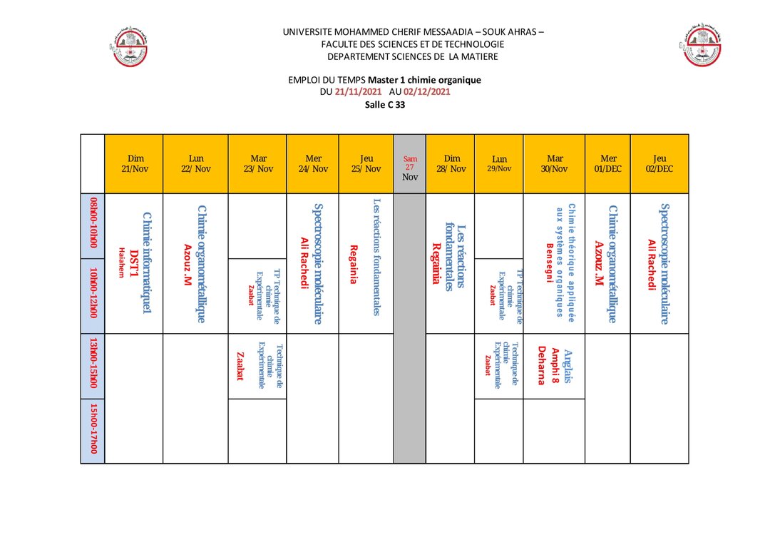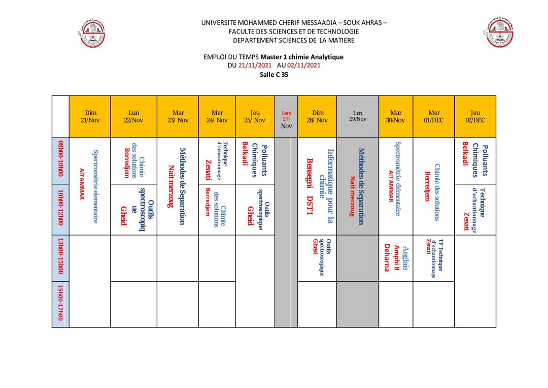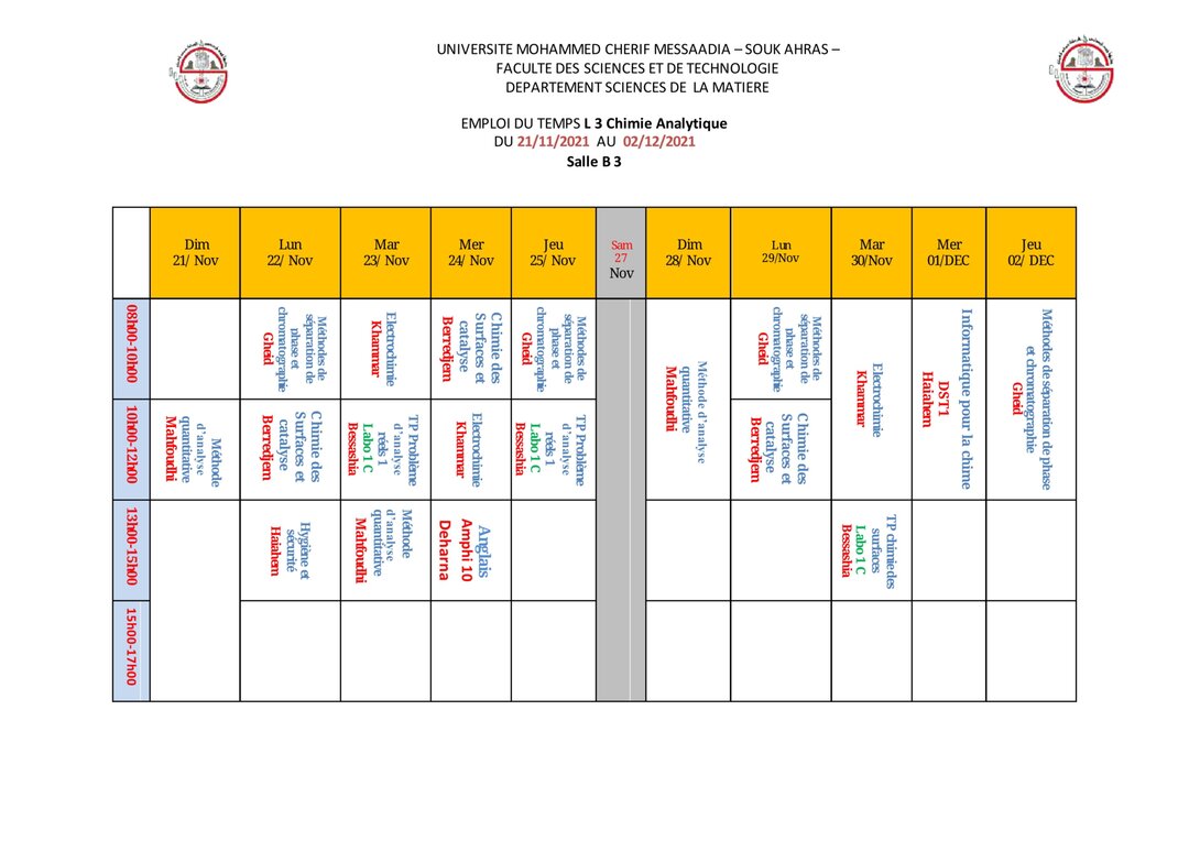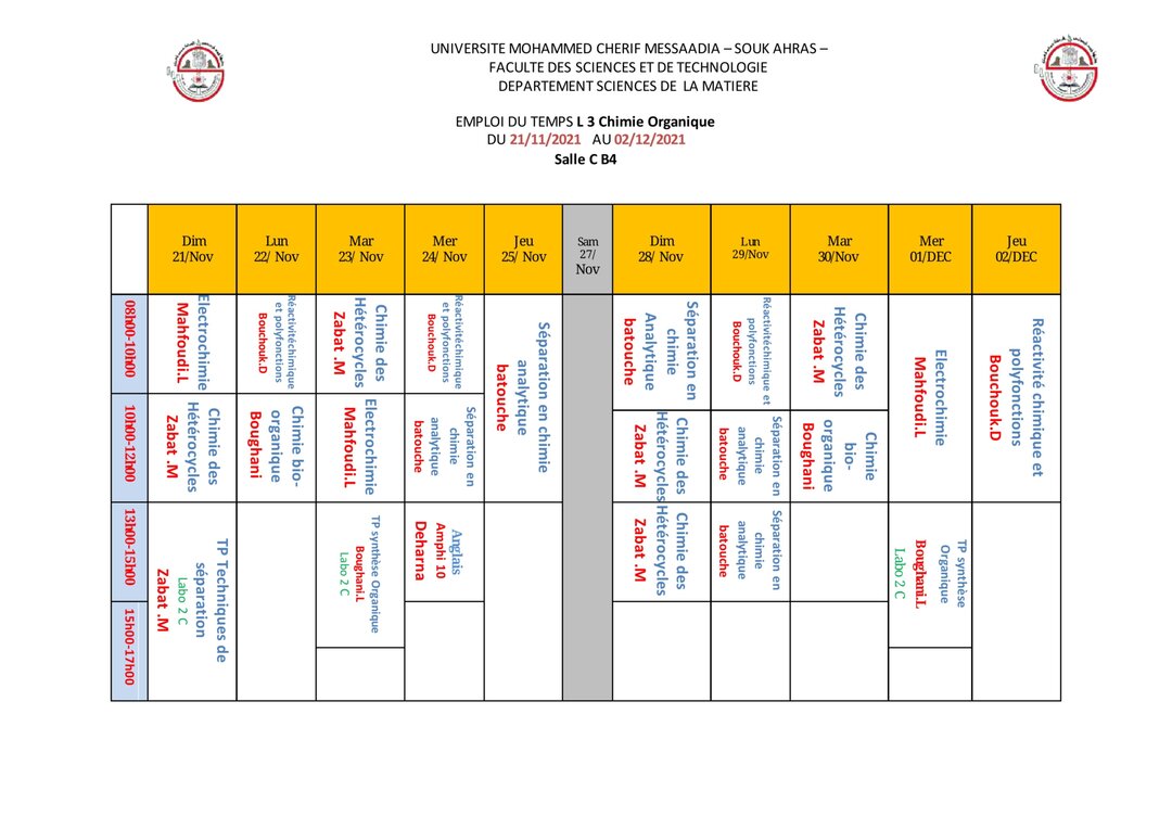 التوزيع الزمني للدفعة 2 لقسم علوم المادة