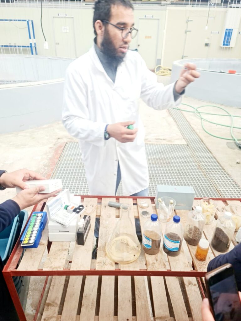 → التعرف الميداني على تربية المائيات (خاصة تربية الروبيان)، وتربية الدواجن (الدجاج البياض)، وصياغة أعلاف الدواجن.