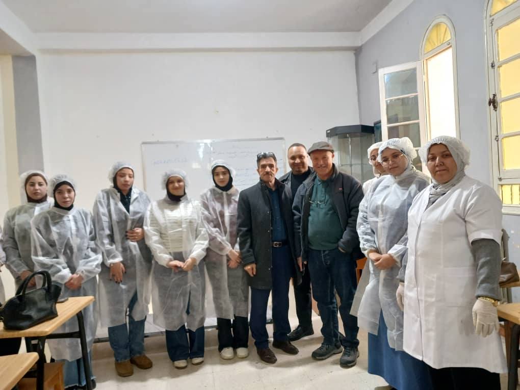 مشاركة السيد عميد كلية علوم الطبيعة والحياة البروفيسور معزي محمد الشريف في فعاليات تدشين مدرسة التكوين و تحسين المستوى، أين استفادت مجموعة من طالبات الكلية من ورشة تدريبية مجانية حول كيفية إعداد الأجبان.