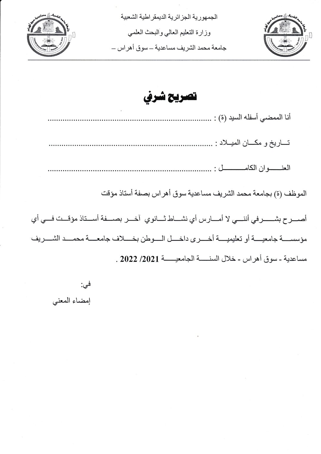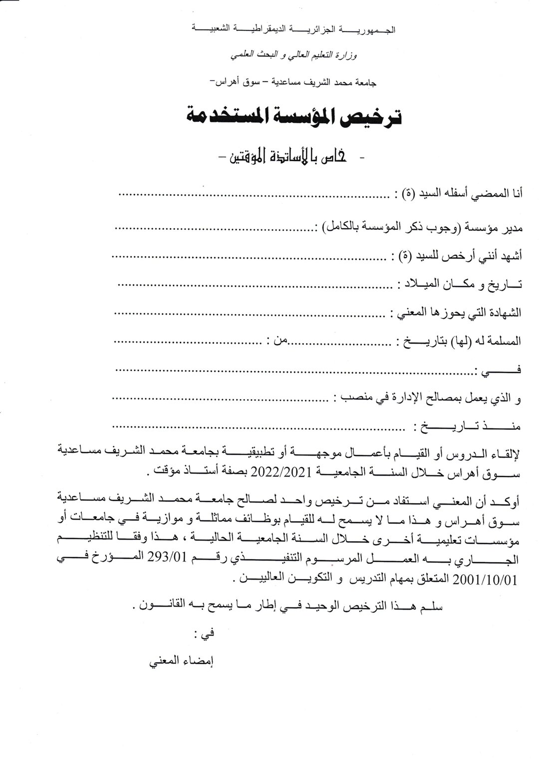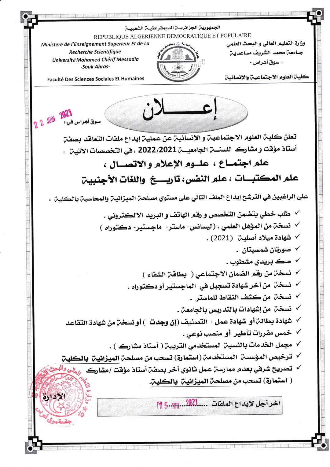 تحضيرا للسنة الجامعية 2022/2021 تعلن كلية العلوم الاجتماعية والانسانية عن بداية ايداع ملفات التعاقد