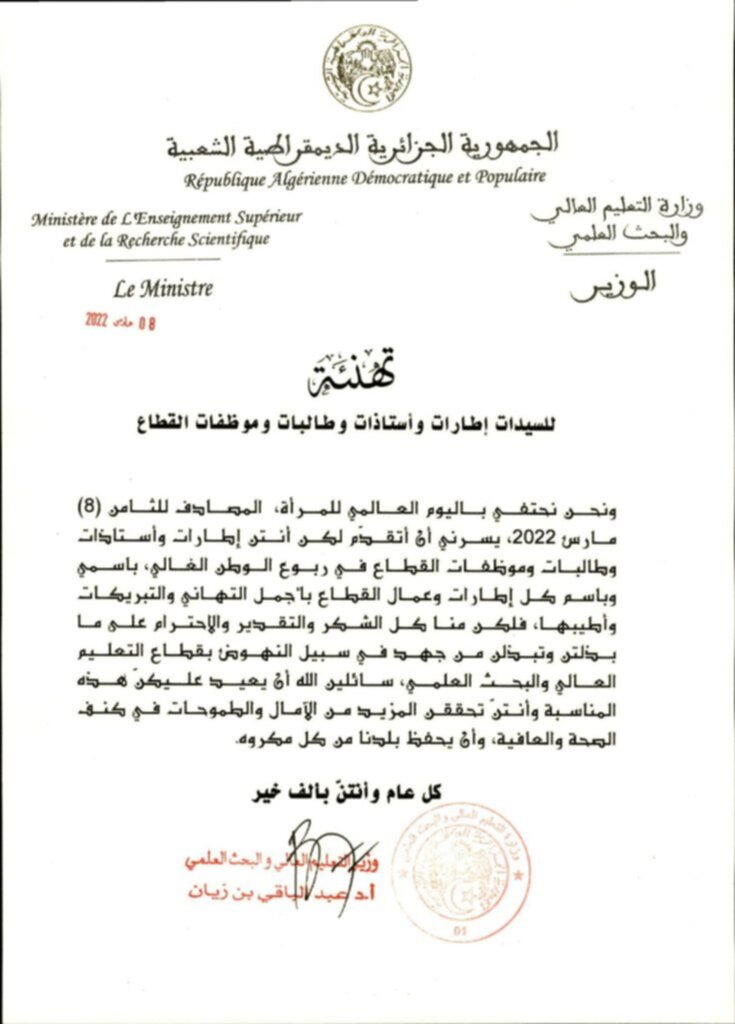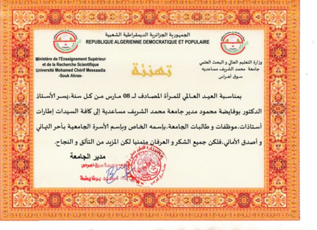 تهنئة بمناسبة اليوم العالمي للمرأة