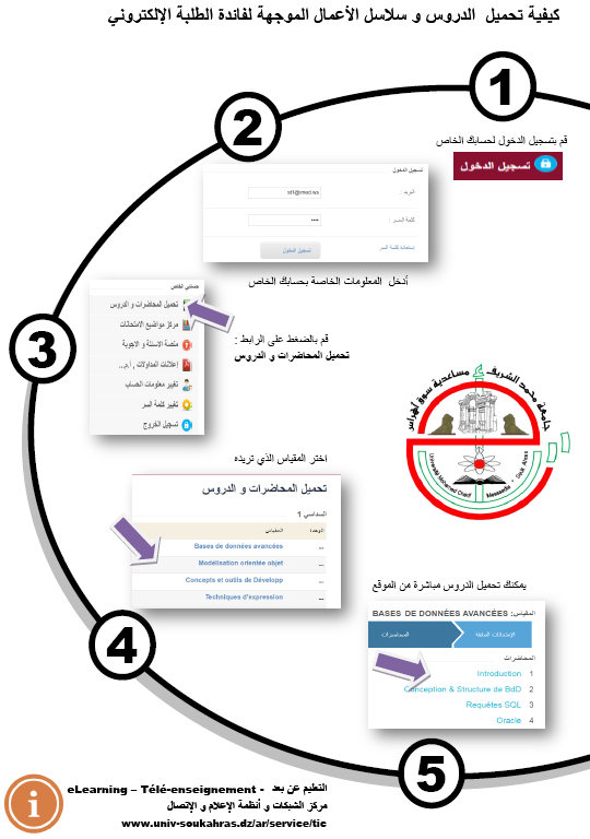 les etapes de télechargement des cours et serie TD concernant les etudiants par le site électronique