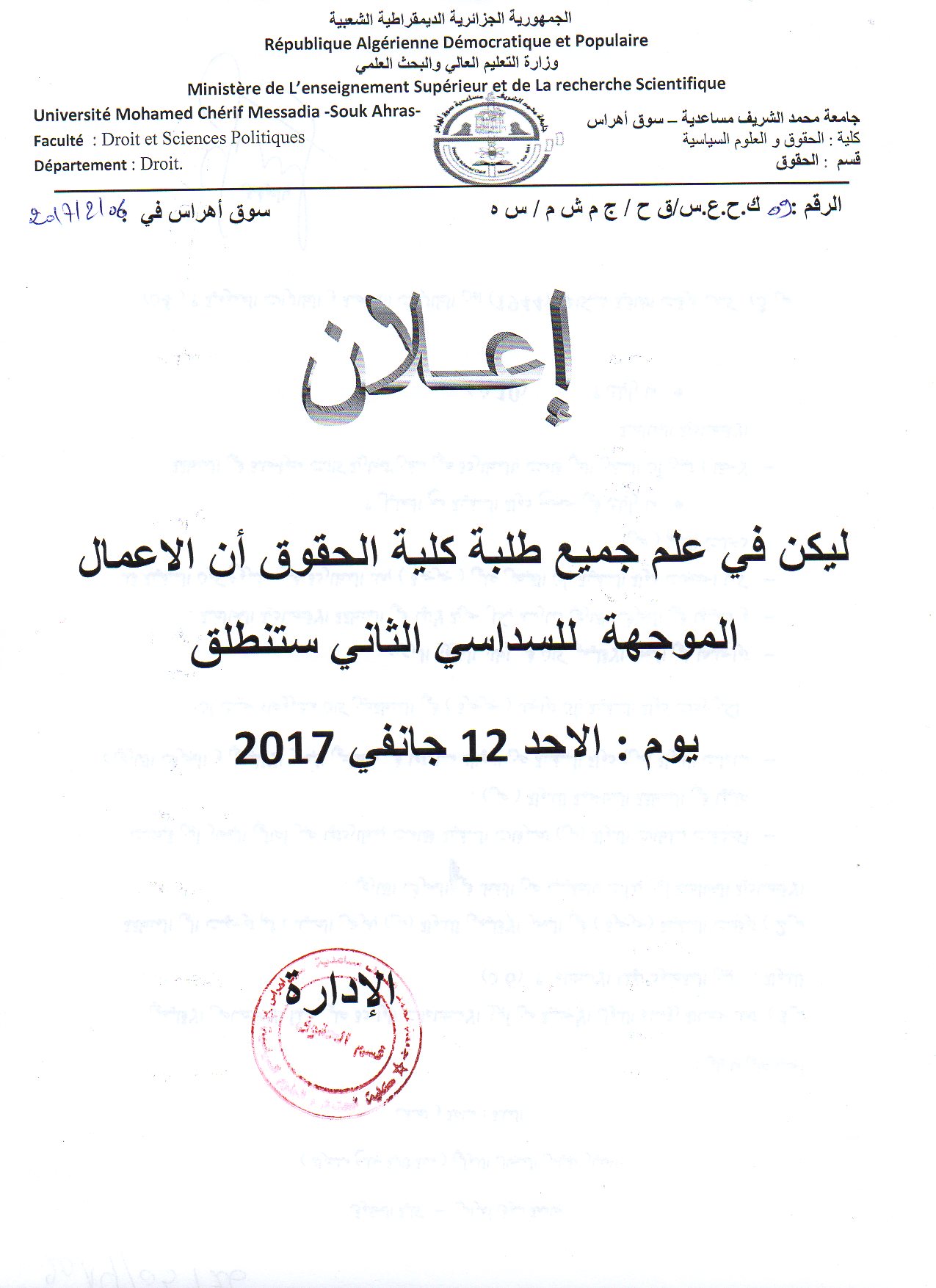 annonce concernant le lancement de TD 2 iéme semestre. lun. 6 févr. 2017 12:32 lun. 6 févr. 2017 12:33