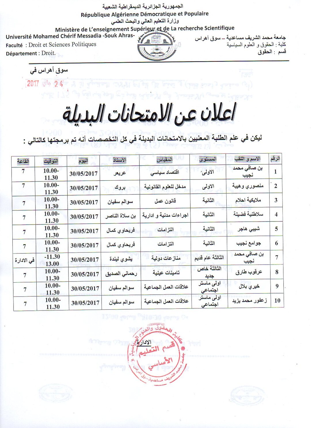 إعلان عن الامتحانات البديلة لكل السنوات
