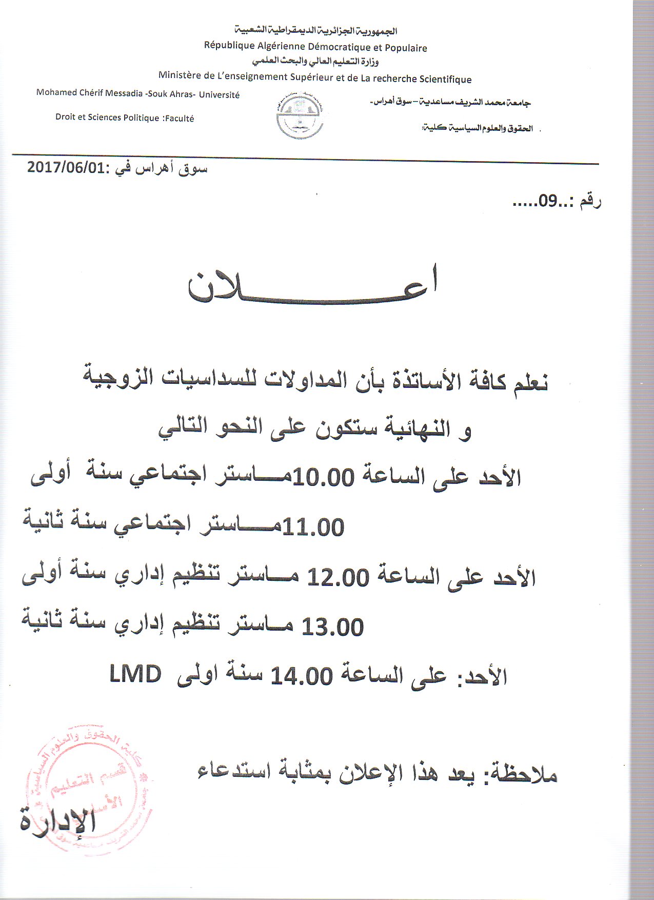 annonce pour les enseignants concernant la délébiration des semestres paires
