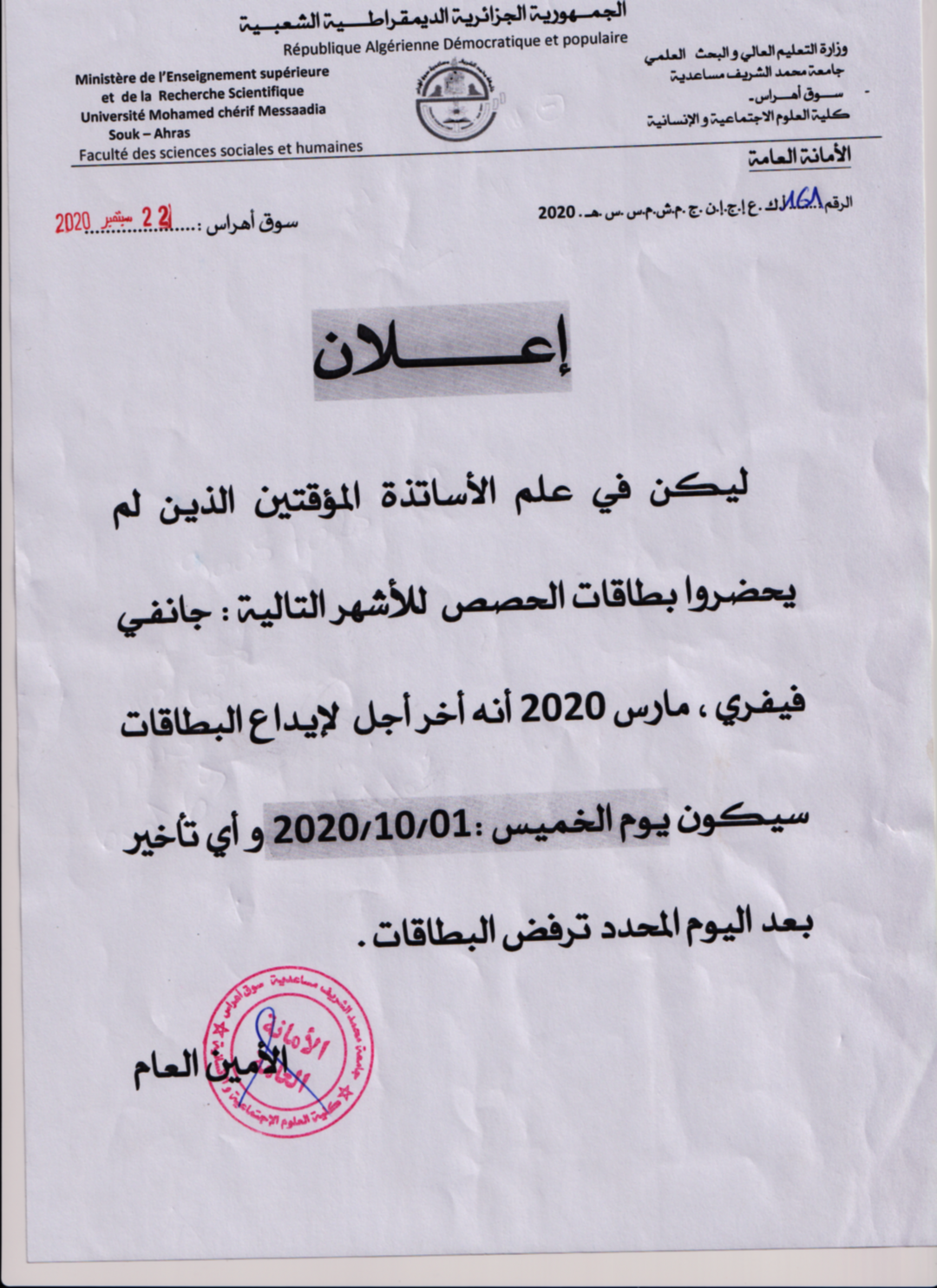 إعلان للأساتذة المؤقتين