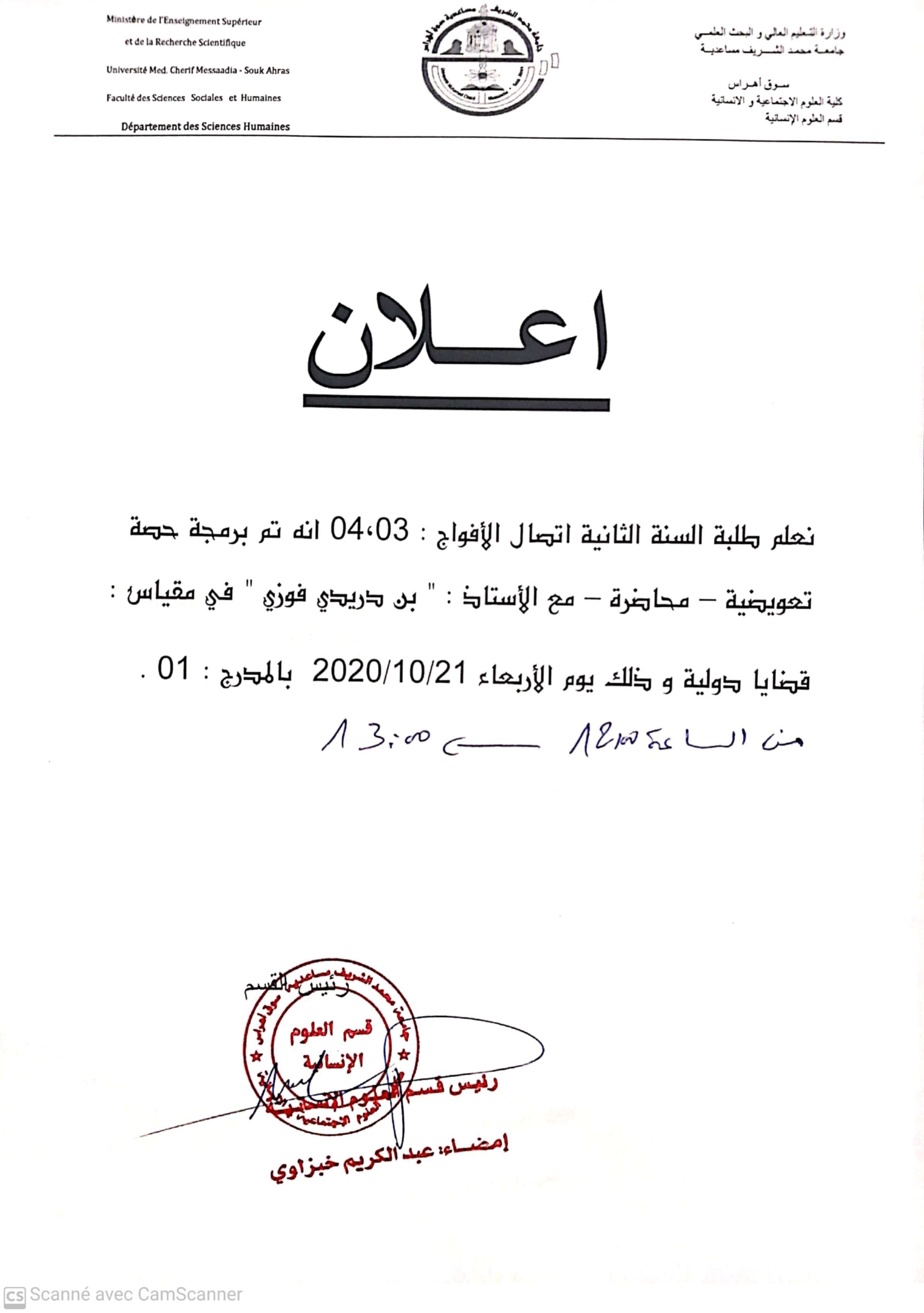إعلان عالجل للسنة ثانية اعلام واتصال