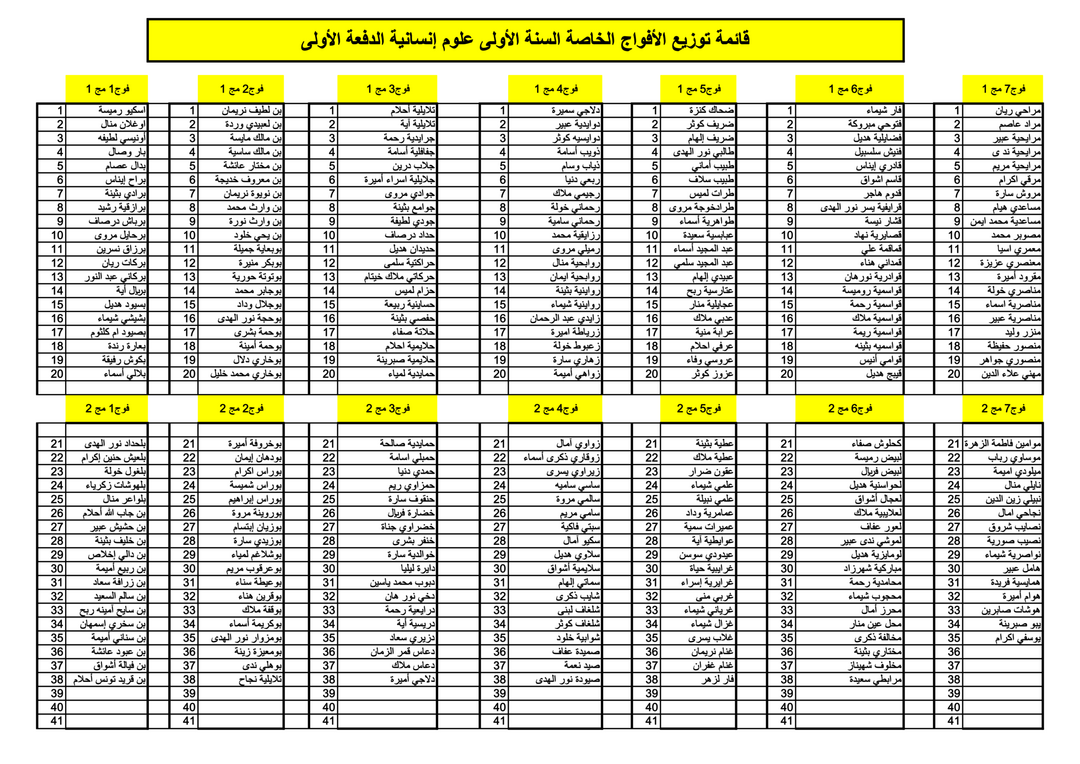 توزيع الأفواج الخاص بالسنة الأولى علوم انسانية