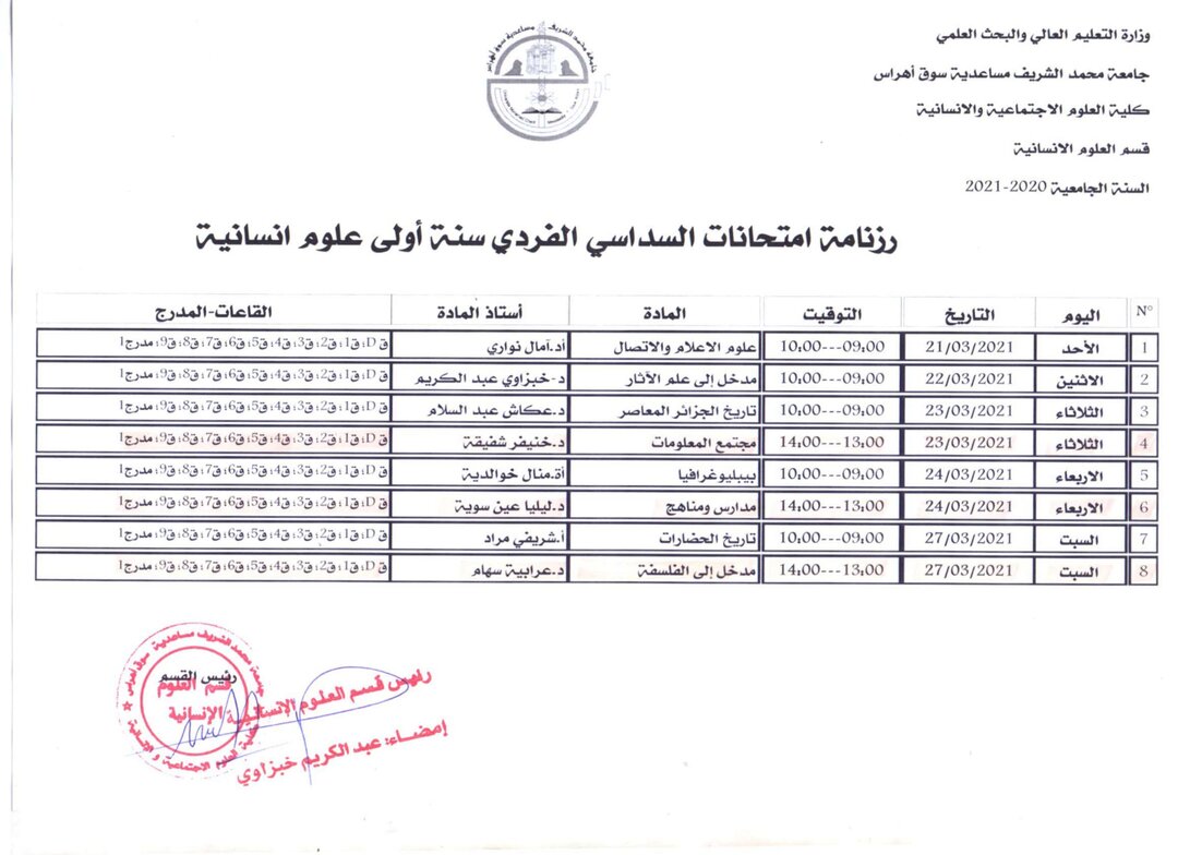 رزنامة امتحانات السداسي الفردي سنة أولى وسنة ثانية تاريخ mar. 9 mars 2021 13:33 سنة أولى علوم انسانية سنة ثانية تاريخ عام