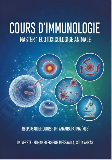 Ce cours d’immunologie générale est destiné aux étudiants de Master 1 en écotoxicologie animale. Il vise à fournir les bases fondamentales du fonctionnement du système immunitaire chez les animaux. Il aborde les mécanismes de défense de l’organisme face aux agents pathogènes 🦠, en distinguant l’immunité innée et l’immunité adaptative. Les étudiants étudieront les principaux acteurs de la réponse immunitaire (cellules immunitaires, anticorps 🧬, cytokines) ainsi que leurs modes d’action 🔬. Une attention particulière est portée à l’impact des contaminants environnementaux sur le système immunitaire, en lien avec l’écotoxicologie animale, afin de comprendre les effets des polluants sur la santé et la résistance des organismes vivants 🌱