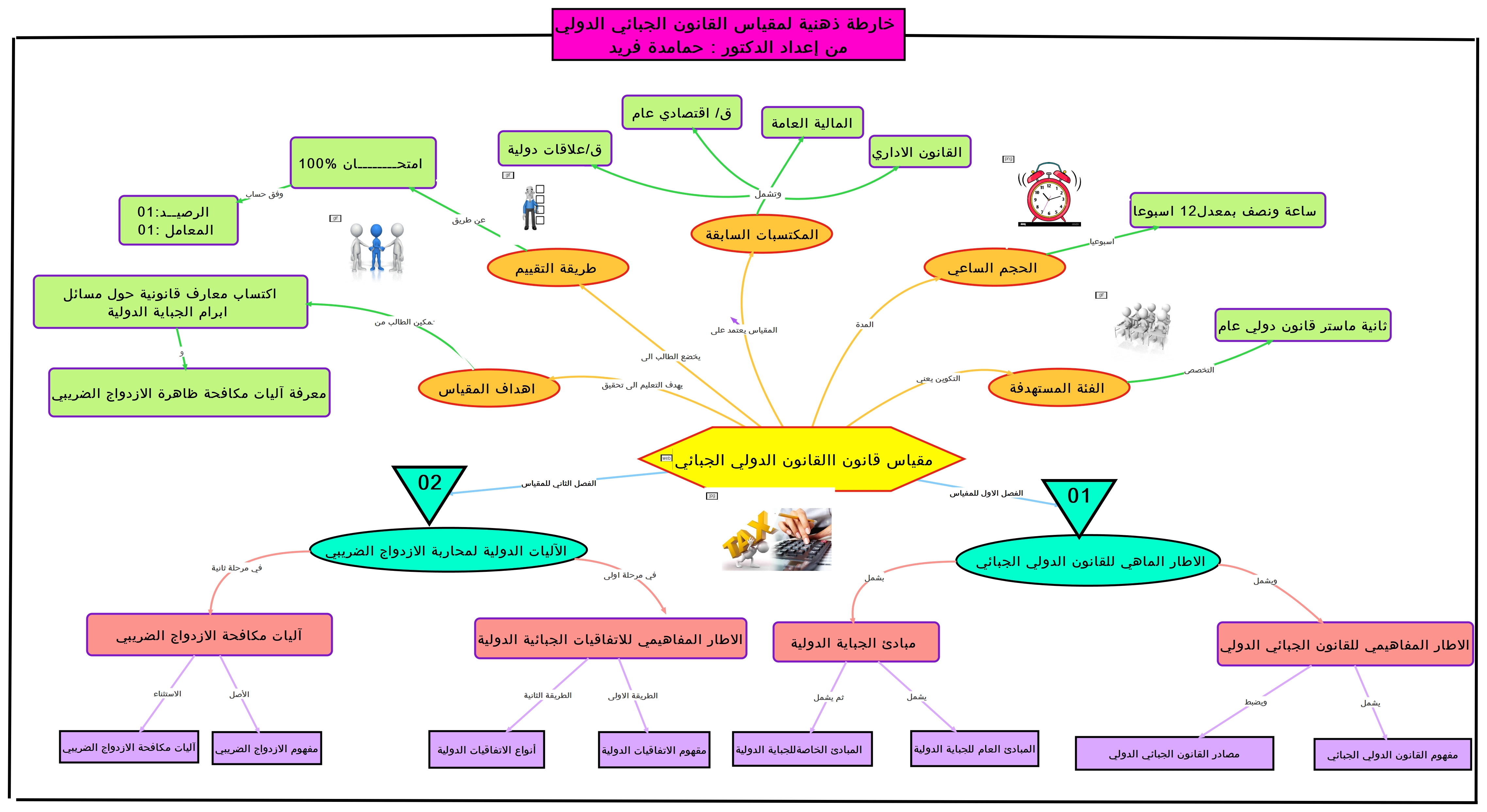 مستوى التطبيق : يدف برنامج هذا المقياس الى تعريف الطالب على ضوابط واليات تطبيق وفرض اعفاء الضريبة بجميع أشكالها وانواعها على تلك المعاملات التجارية الخاصة بالمؤسسات الأجنبية لا سيما من حيث الحساب والتحصيل والتنسيق ومكافحة التهرب والازدواج الضريبي، بحيث يتمكن الطالب من حساب المعدلات الضريبية على ضوء الاطر النظرية الخاصة بالاتفاقيات الدولية