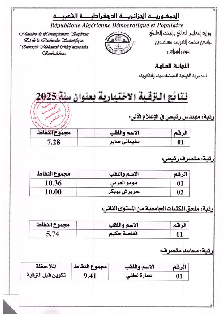 قائمة الناجحين في الترقية الإختيارية بعنوان سنة 2025